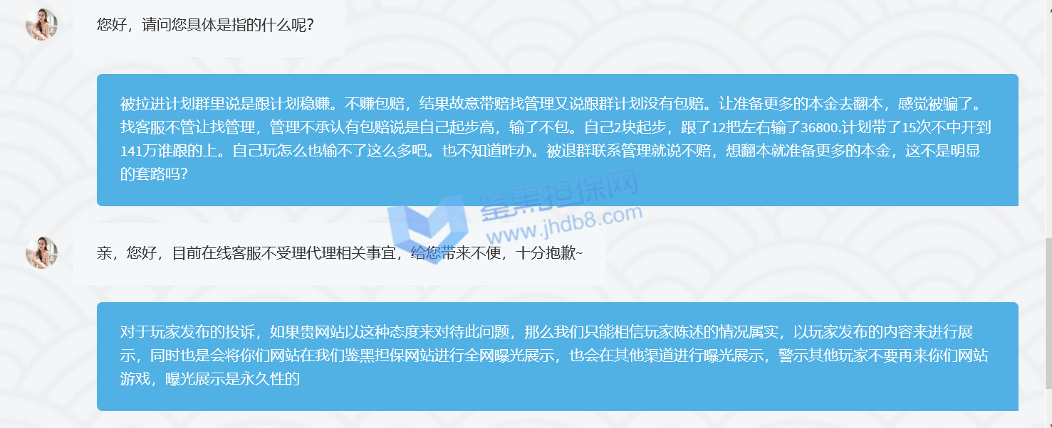 4.用户提交维权需为本人提交,若代替让人发布维权鉴黑担保网将拒绝受理;