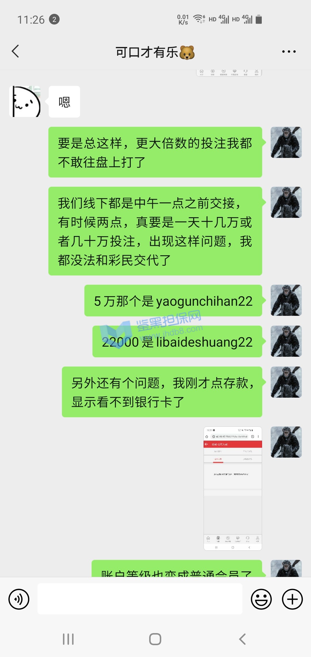 我是个线下低频彩庄家,主营线下福彩3D与体彩排列三的彩民投注,由于个人实力有限,每天会将一部分彩民投注打到盘上,本人保证所有注单都是真实彩民投注! 很早就有这家台子客服的微信,但没有尝试过投注,今年春节前,他家客服联系我,想合作,当时我明确表示低频彩由于玩法杂乱流水低赚钱慢,是一种在网上不受待见的彩种,但对方表示没关系,只要彩票站能买的,他那里都可以投注,于是就拿出了一部分投注到开心100了,也就发生了后面的不愉快! 4月4日晚,我正常投注,开奖后提款,很快就显示提款成功,但直到第二天都没有到账,客服以三方延迟为借口推脱,还诱骗我继续充值,但我没有继续上当,后来经过交涉,客服承认黑我钱,因为我赢了,他要降低损失,一共黑了我73360并注销了我的账号,希望大家擦亮眼睛,不要被这种黑台子诱惑,说的再多保障都没用,真黑你时候,你是找不到人的!另外要说明的是,由于低频彩封盘与投注时间非常紧张,所以本人经过与客服协商并得到他同意后申请了两个账号进行投注,不然忙不过来,每天我投注官方玩法,我员工投注传统彩玩法,绝非同平台对打套利,所有投注项目全部提前与客服协商过并得到了他的同意!恳请平台帮忙维权!