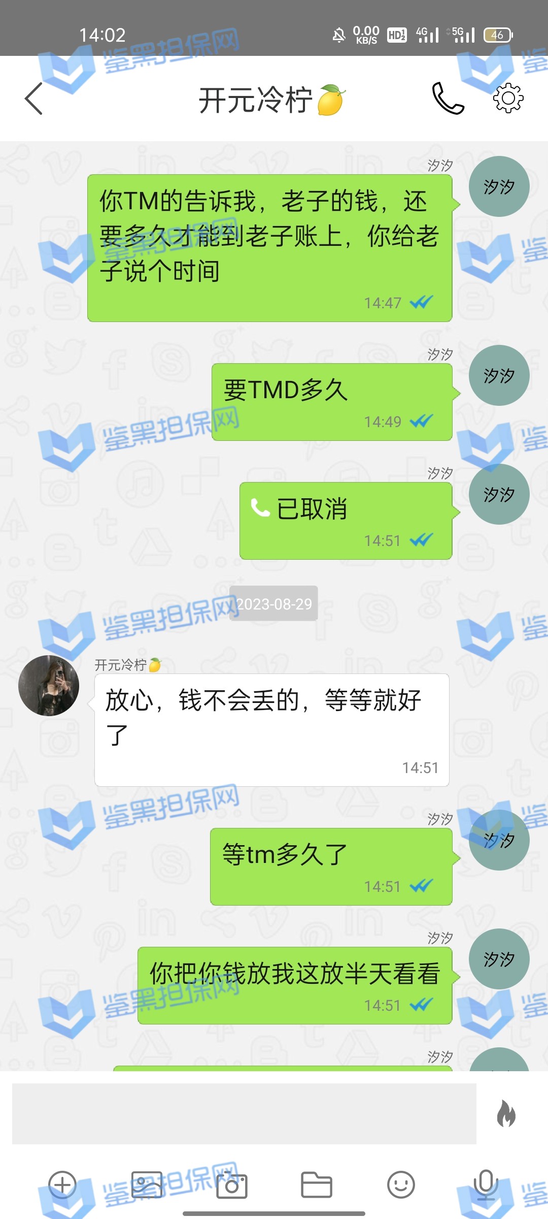 我八月29号凌晨的时候,在开元棋牌注册了一个账号,第一次来这个平台玩,就注册了一个账号,也没申请优惠,第一笔充了一万,打ag魔龙,赢了两千,提的gopay提现到账了,第二笔我充了三万进去,还是打ag魔龙,赢了五千,一共三万五,我提现,凌晨五点的时候提现的gopay,一直没到账,问客服,客服让我中午十二点再去找他,我中午十二点去找了,他一直在说催财务,在审核,一直不给我打钱,下午两点多的时候,他让下载Mchatapp https://www.mchat.com/#/home,添加专员【lengning91】问提款问题,我加了专员第一句话就是问他我的提款怎么还没到账,专员没理我,然后自顾自的帮我申请了一个什么回访福利,有228彩金,我不要的,他自己帮我申请的,一直在账号那里没动过,等我又说了一遍他才说查一下,查了然后一直让我等,说什么人多提现通道堵,让我等,还跟我保证说钱不会丢,等到下午三点多,我发现账号登录不上去了,我去问专员,专员就不回我信息了,一直不回信息,直到今天才回了一下信息,说不会随意冻结会员账号,然后就又不理我了,我找在线客服问,一直都说说什么风控异常套利审核,我什么彩金都没有申请,就赢了几千块而已,然后我让他把我本金退我,他就不理我,不回我信息了