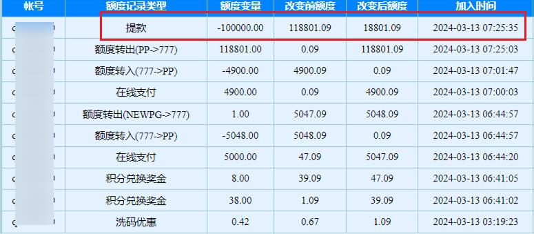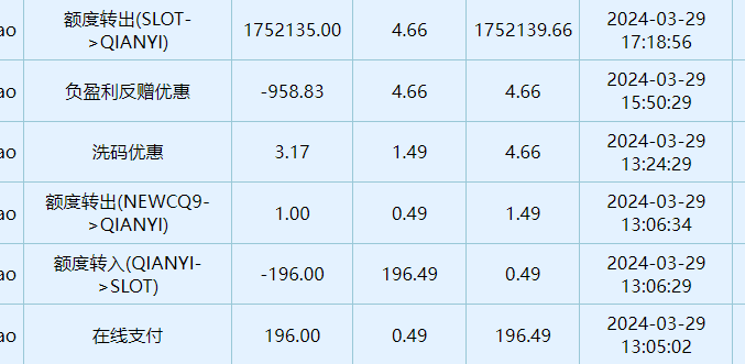 郑老板当日充值两次第一次128元玩了PG老虎机,第二次充值308元转入PT老虎机。单日充值不多,436元。