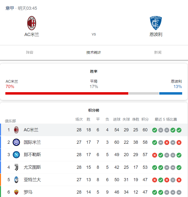 意甲 03:45 ❤️AC米兰VS恩波里❤️ 前瞻
