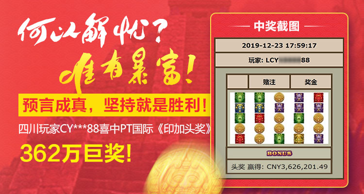 结果她老公在PT国际《印加头奖》投注8元,中奖3,626,201.49元!