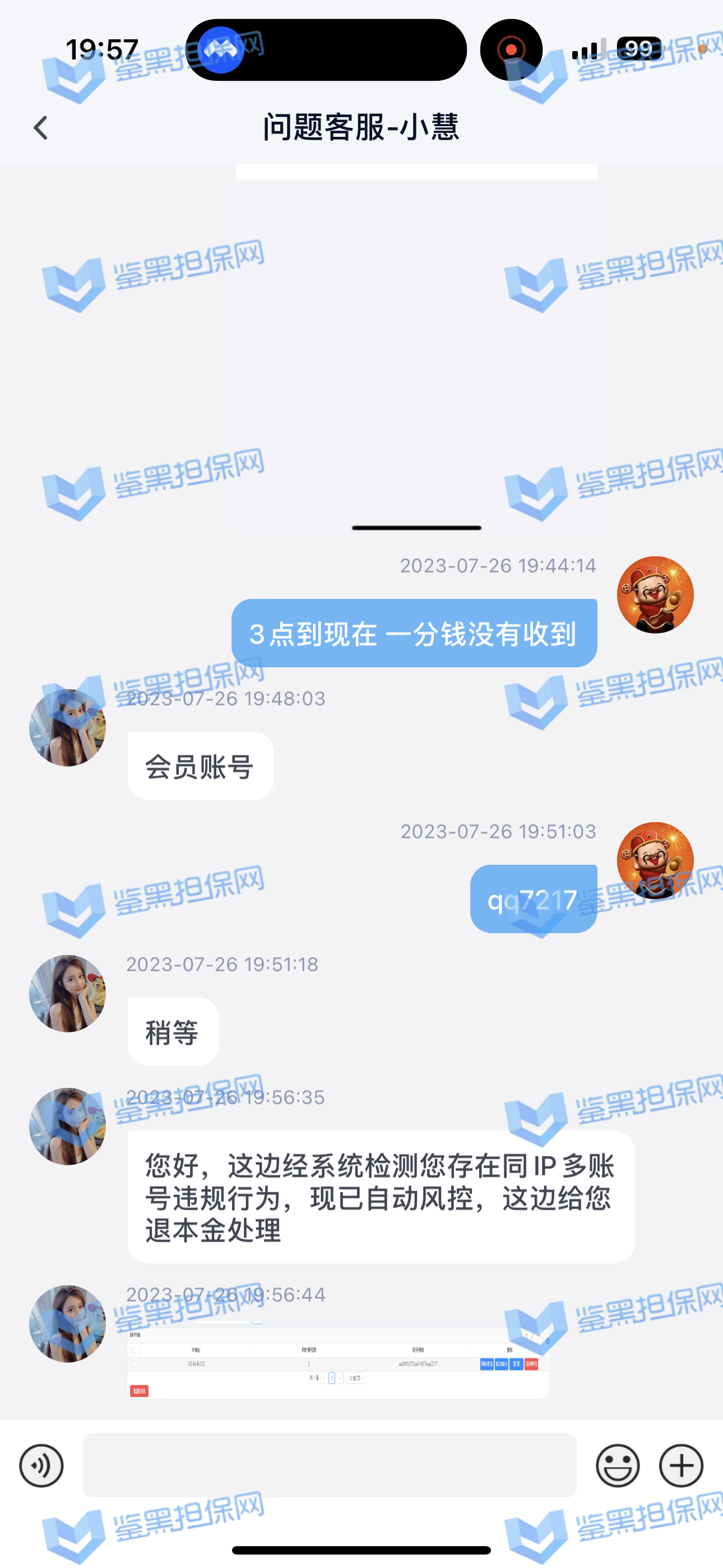 2、鉴黑维权专员联系该娱乐城核实,对方提供此会员使用的IP存在多个账号的情况的相关资讯复查,与套利团队关联,套利规则判断中注明:使用的IP在娱乐城存在账号的情况,每个人的手机网络IP等都是不一样的,提醒广大玩家一定要遵守娱乐城的游戏规则!